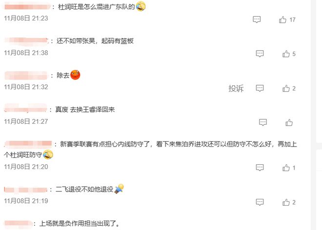 賽后,有不少球迷對一直在混比賽的杜潤旺展開了“圍攻”,有球迷表示還不如帶張昊,起碼有籃板,也有球迷認為二飛退役不如他退役,甚至還有球迷直言,如果下半場不上杜潤旺,那廣東隊早就贏夠37分了。
