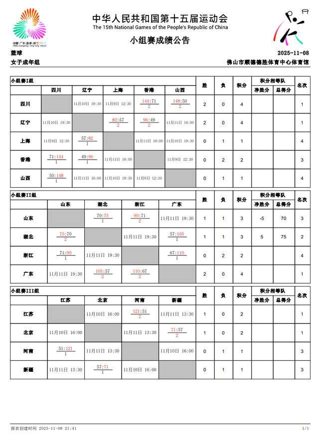 隨著山東爆冷,廣東大勝,全運女籃積分榜有了新變化,四川太穩了